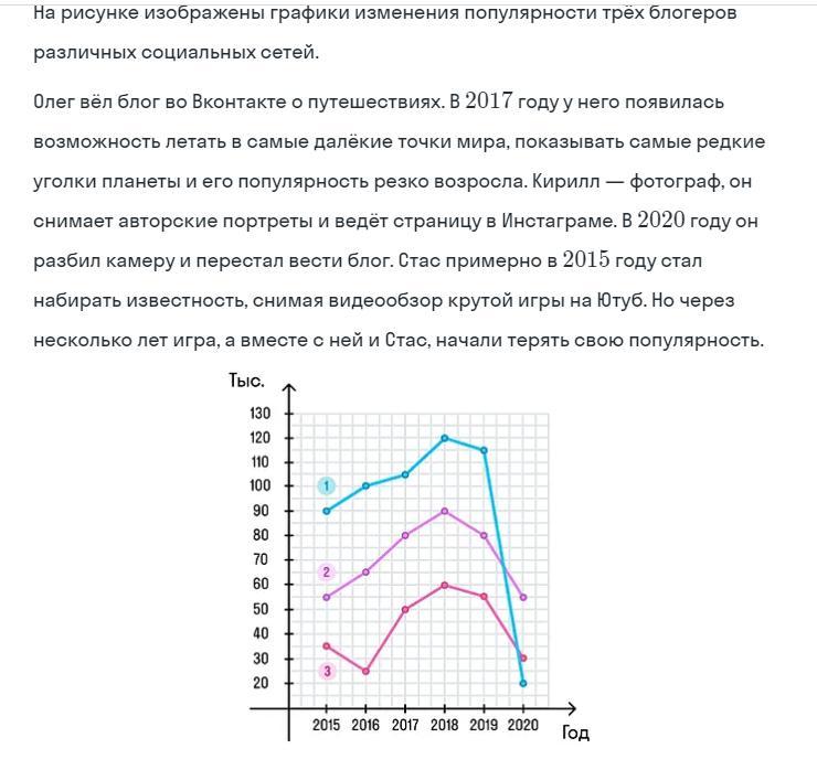 Ой простите Определи, какому блогеру соответствует каждый график.