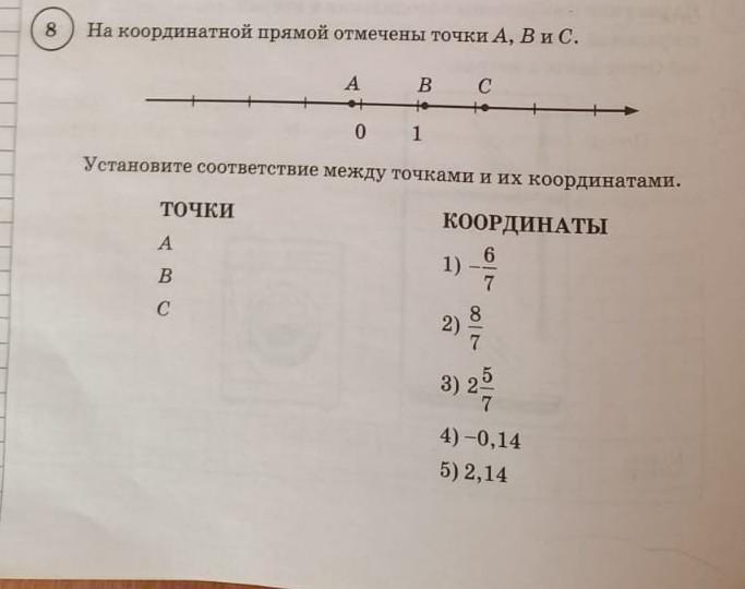 Ну смотри точка A - отрицательная, есть число -0,14 ,оно ближе к нулю ,чем -6/7, а точке как раз находится ближе к нулю поэтому