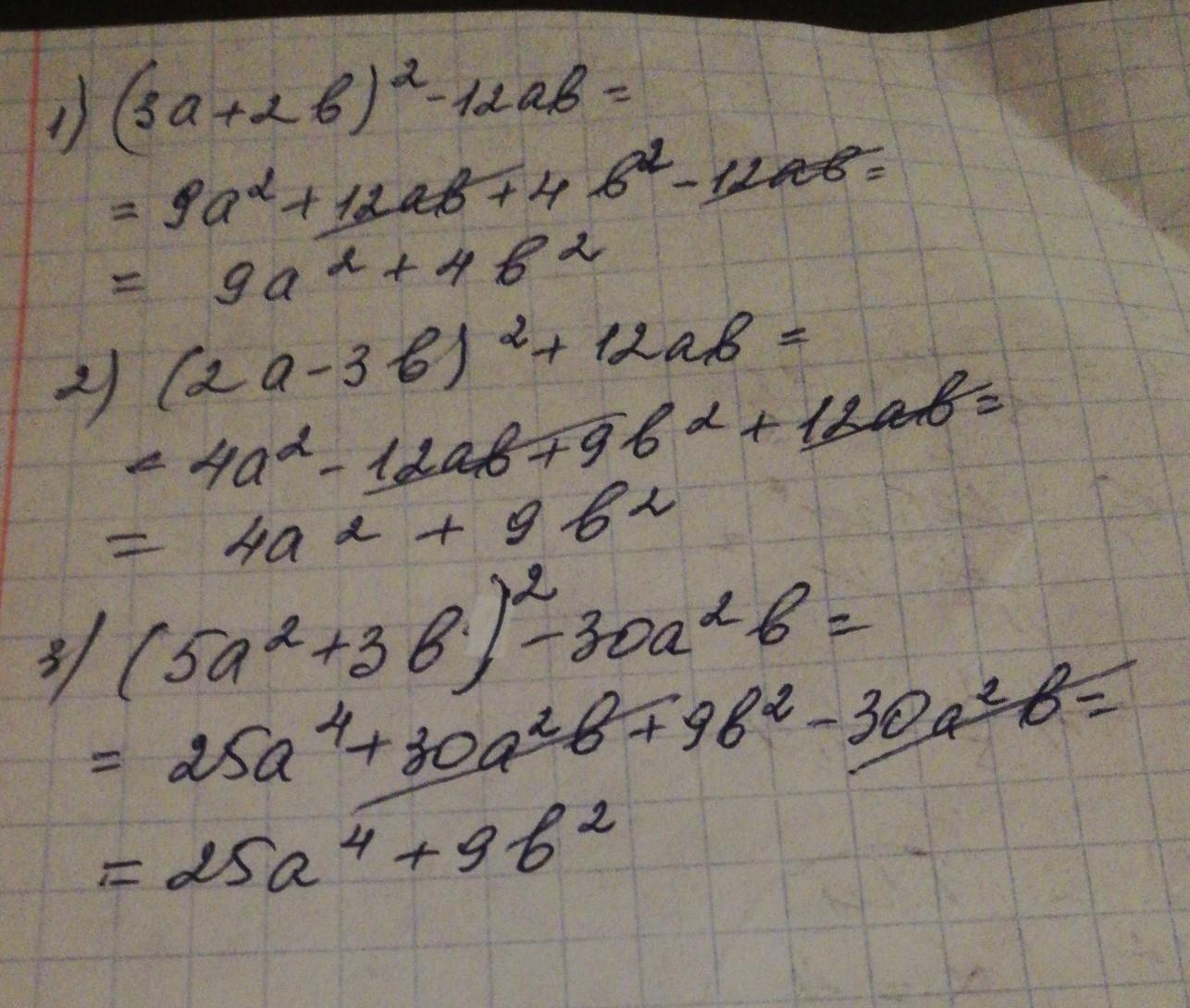 2) = 4a² - 12ab + 9b² + 12ab = 4a² + 9b²