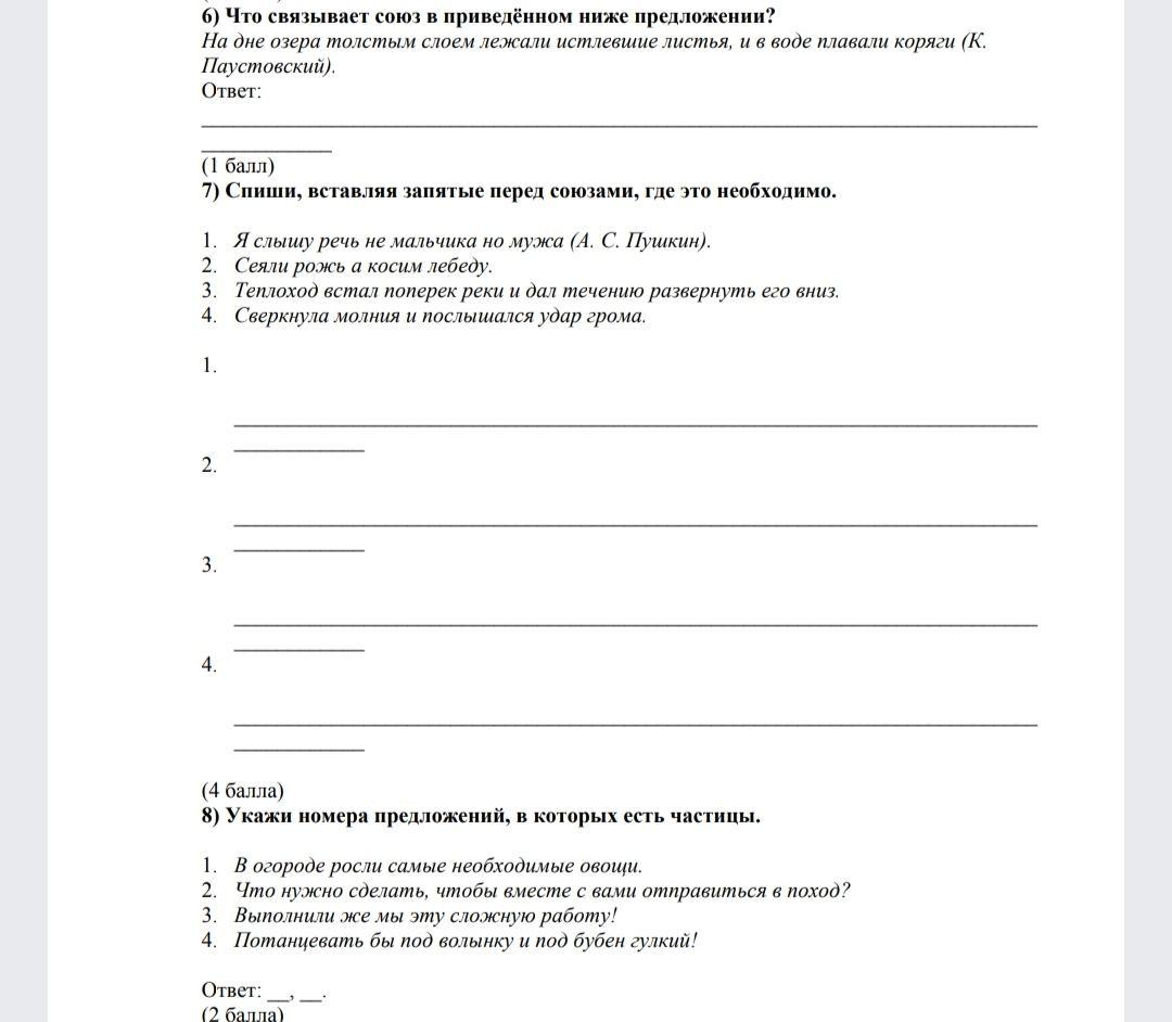 7) Спиши, вставляя запятые перед союзами, где это необходимо.