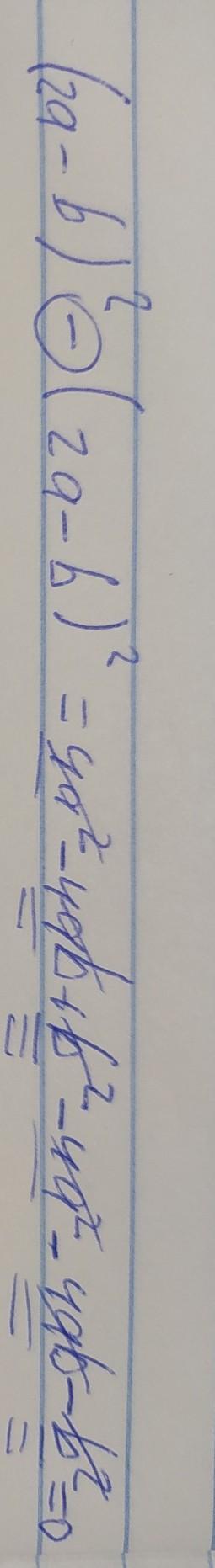 (2a-b)^2 - (2a-b)^2 = 4a^2 - 4ab + b^2 - 4a^2 + 4ab + b^2 = 2b^2