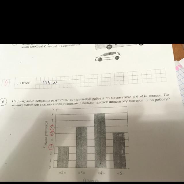 вертикальной оси указано число учеников. Сколько человек писали эту контрольную работу?