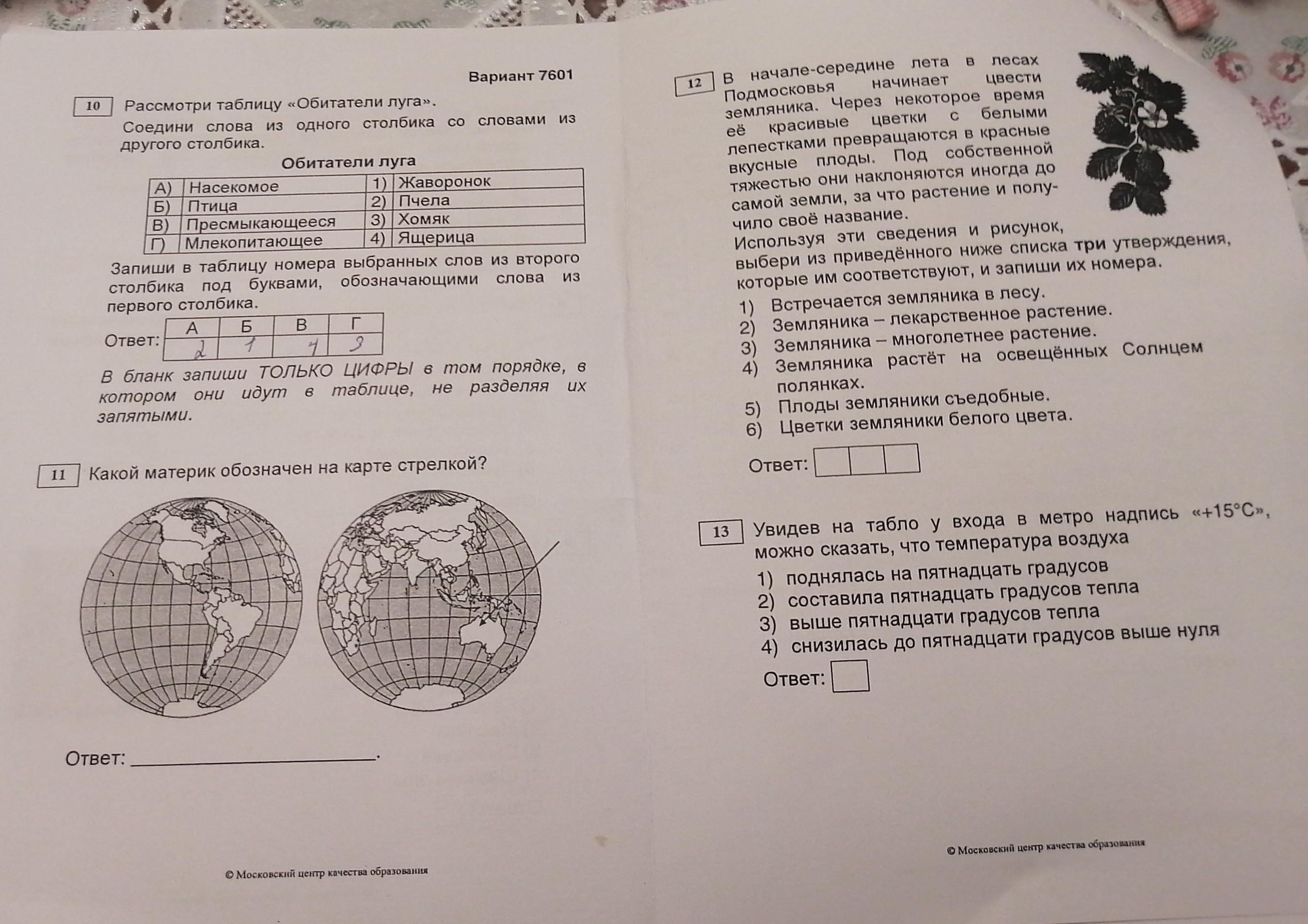 Ответ: 11. Австралия, 12. 1), 5), 6), 13. 2).