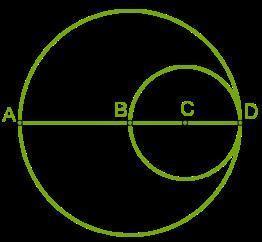 Известно, что точка B — центр большой окружности, точка C — центр меньшей окружности, а точка D — единственная общая точка обеих окружностей.