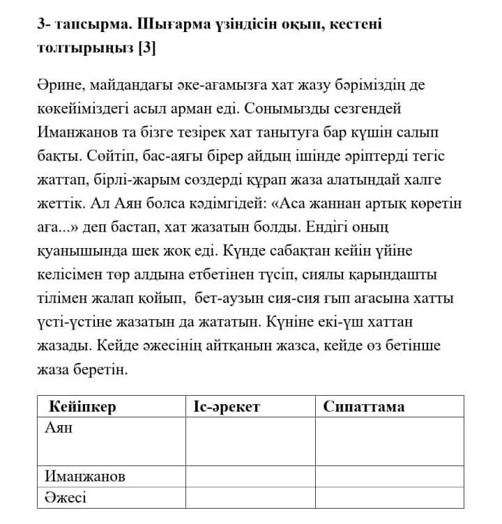3- тапсырма. Шығарма үзіндісін окып, кестенi