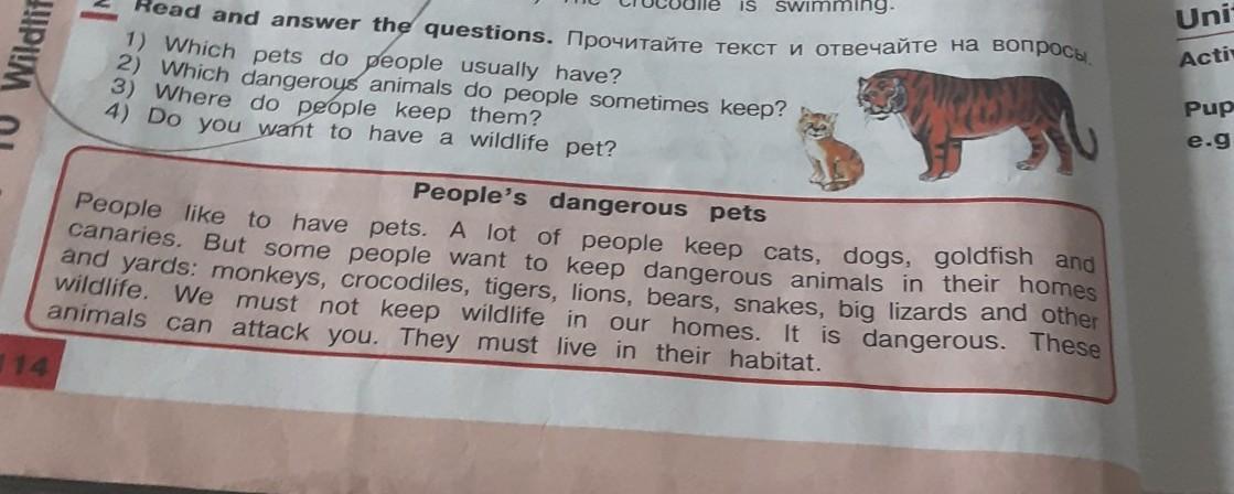 2. Some people keep such dangerous animals as: monkeys, crocodiles, tigers, lions, bears, snakes, big lizards and other wildlife.
