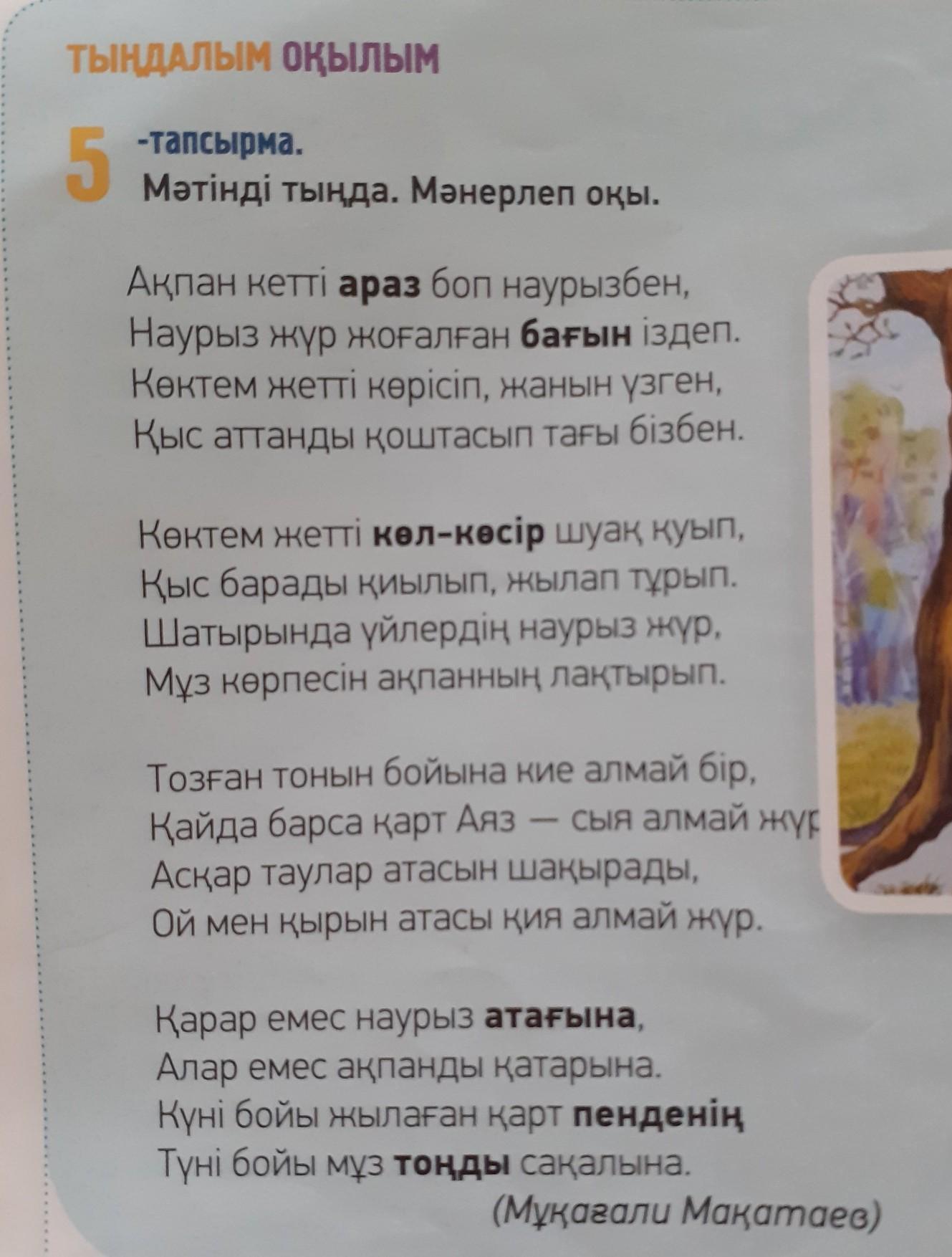 6 -тапсырма. Мәтіндегі қою қаріппен жазылған сөздердің мағынасын аудармасы- мен бірге дәптеріңе жазып ал.