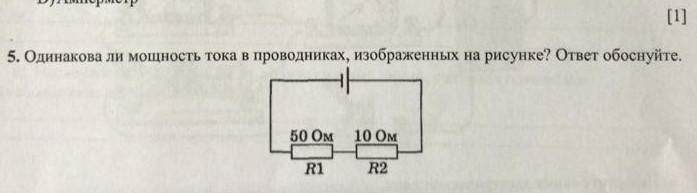 одинакова ли мощность тока в проводниках, изображенных на рисунке? Ответ обоснуйте.