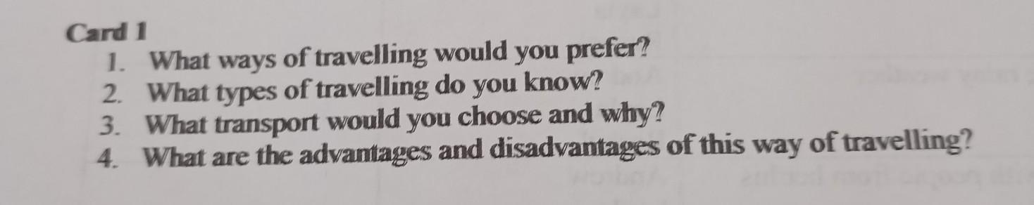 3) For travel, I would choose an airplane, it is very fast and the view from the airplane window is simply amazing.
