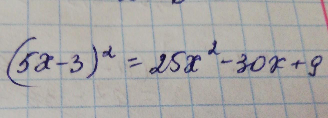 (5х-3)²=(5х)²-2*5х*3+3²=25х²-30х+9