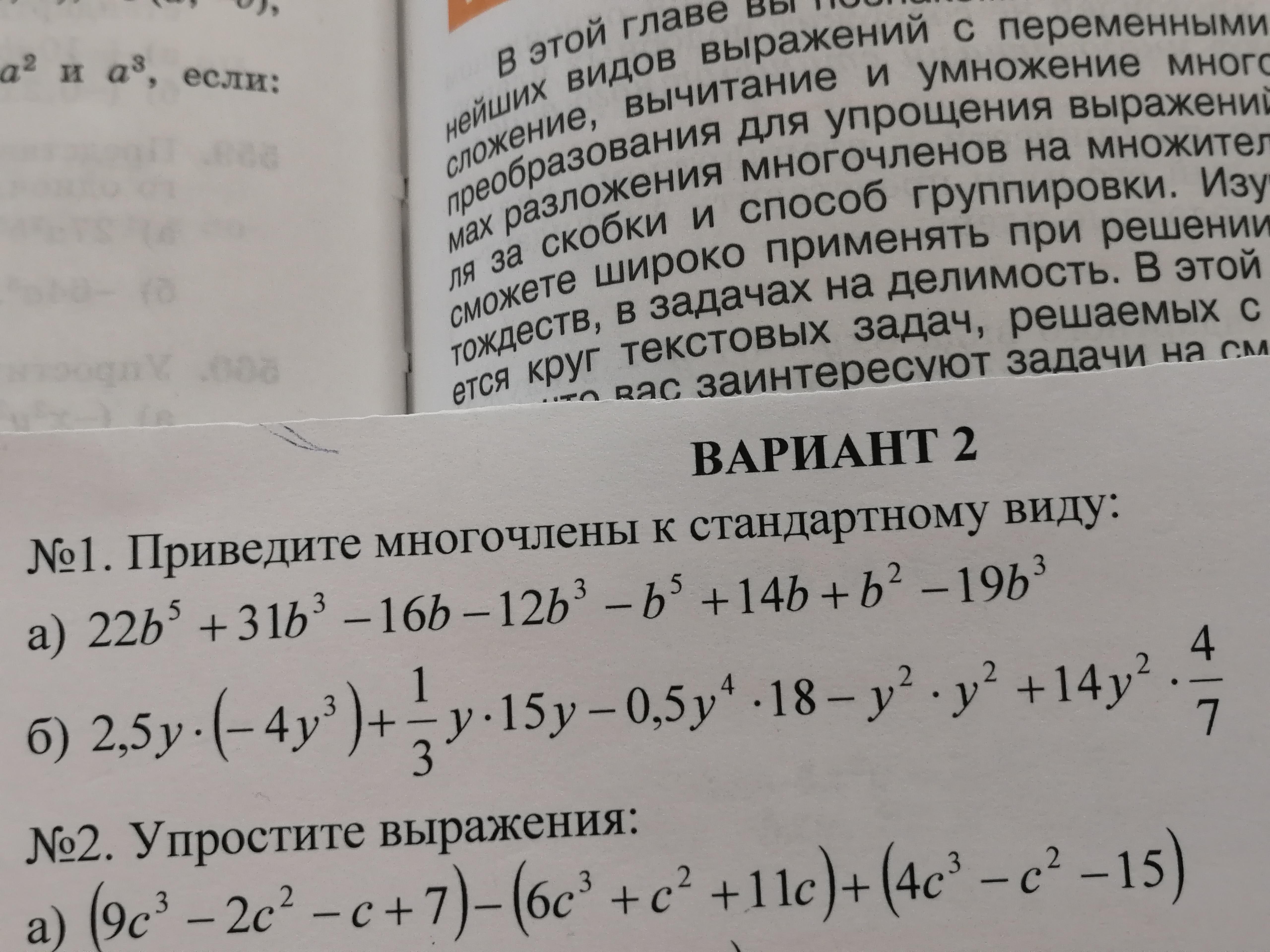 2) 2,5y * ( -4y³) + 1/3y * 15y - 0,5y⁴ * 18 - y² * y² + 14y² * 4/7 = 13y²