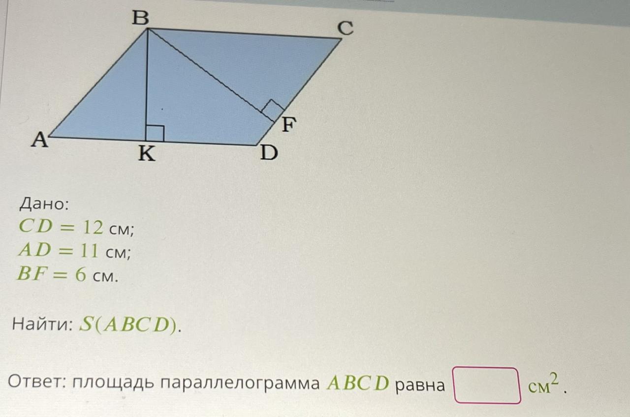 Ответ: площадь параллелограмма ABCD равна см2.