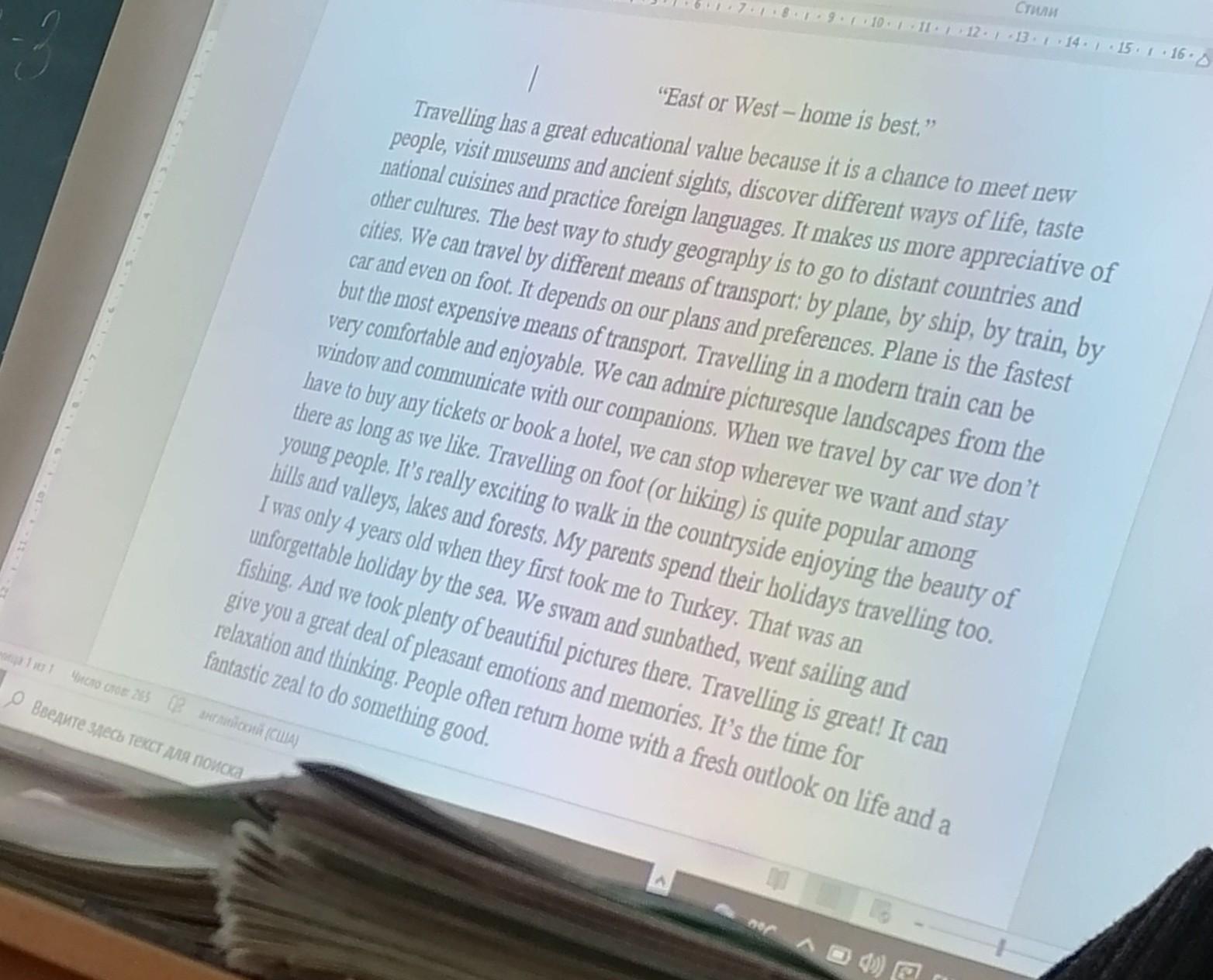 Лучший способ изучать географию - это отправиться в далекие страны и города. Мы можем путешествовать разными видами транспорта: самолетом, кораблем, поездом, машиной и даже пешком. Это зависит от наших планов и предпочтений.