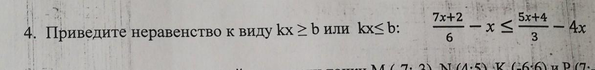 7х+2/6 - х<5х+4/3. Приведите неравенство к виду kx >b или kx. пж помогите соч. 50 баллов пж