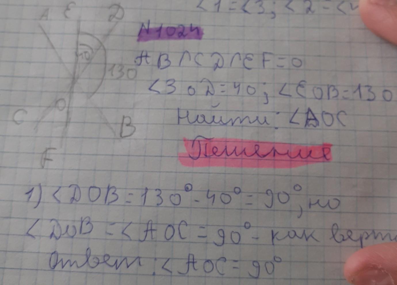 При пересечении двух прямых получается 4 угла: два угла вертикальных и два угла смежных.
