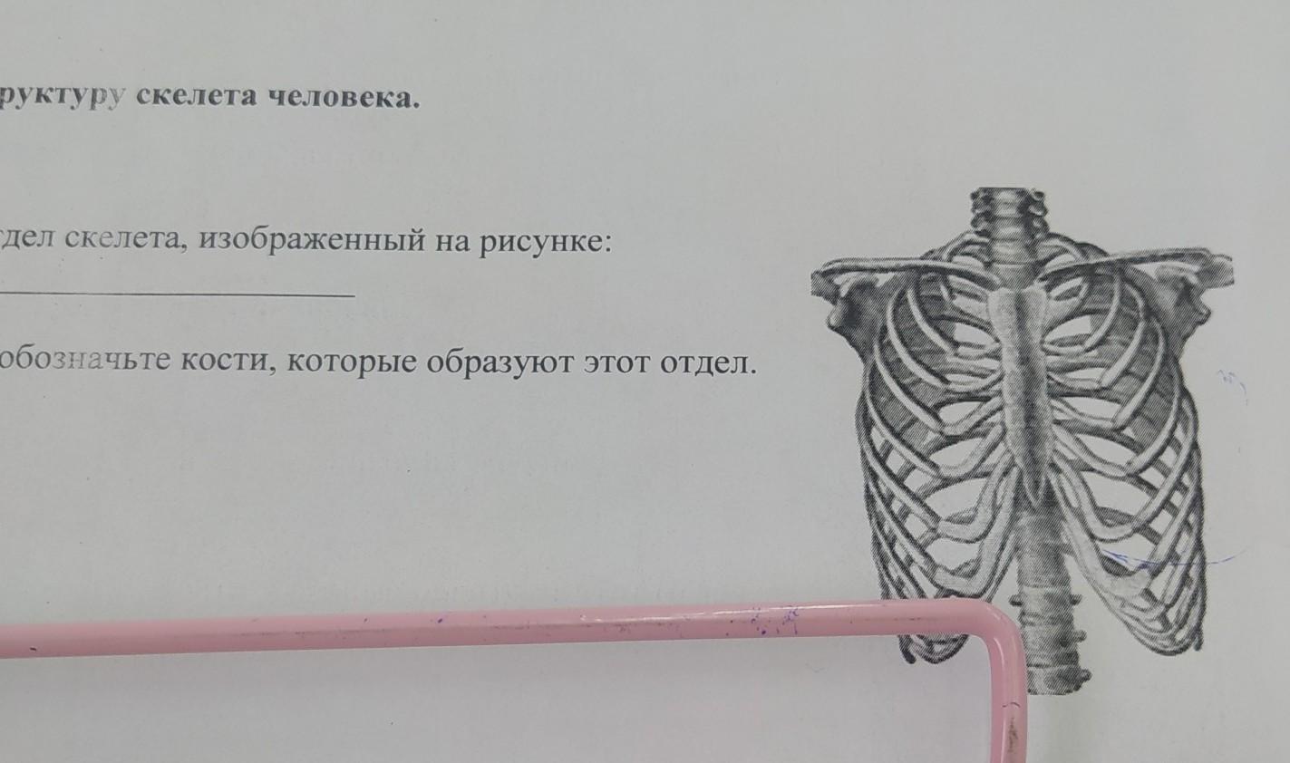 3) От чего зависит давлен Задание3 Опишите структуру скелета человека. а) Назовите отдел скелета, изображенный на рисунке: (b) Назовите и обозначьте кости, которые образуют этот отдел.?