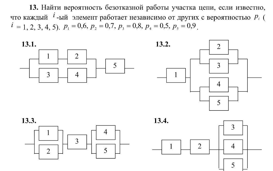 При параллельном - когда хотя бы один работает , при последовательном - когда все работают. Соответствующие формулы написаны...