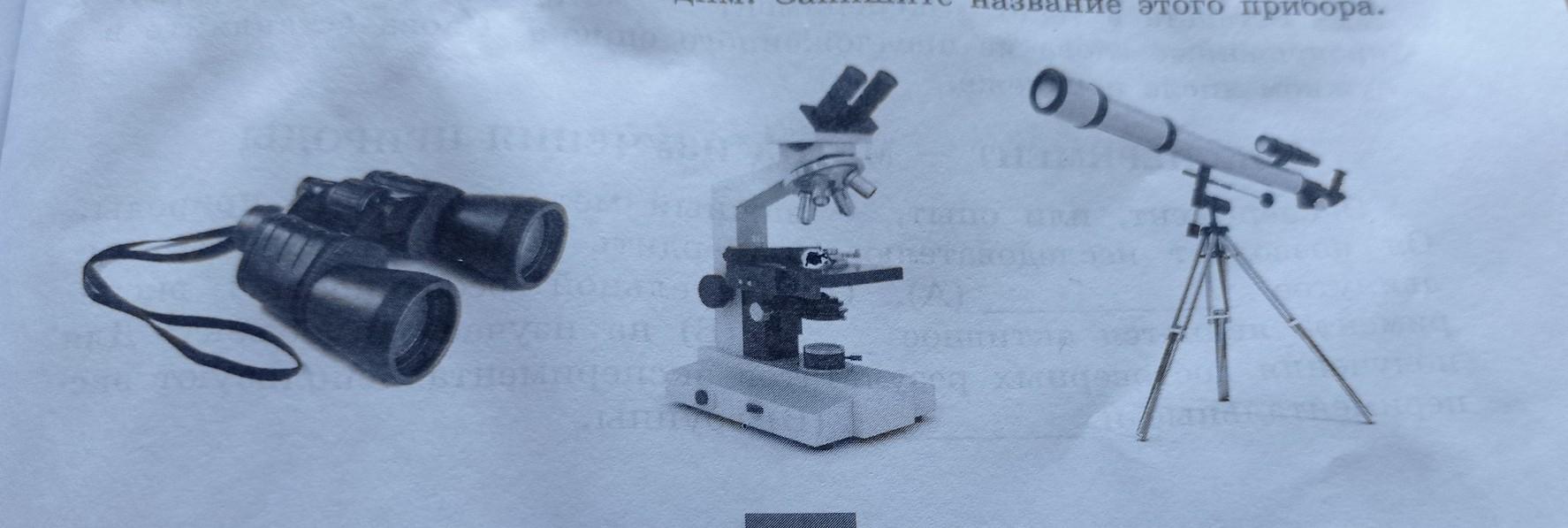 5. Ученик наблюдает за высоко летящими птицами. Выберите прибор, который ему необходим. Запишите название этого прибора.