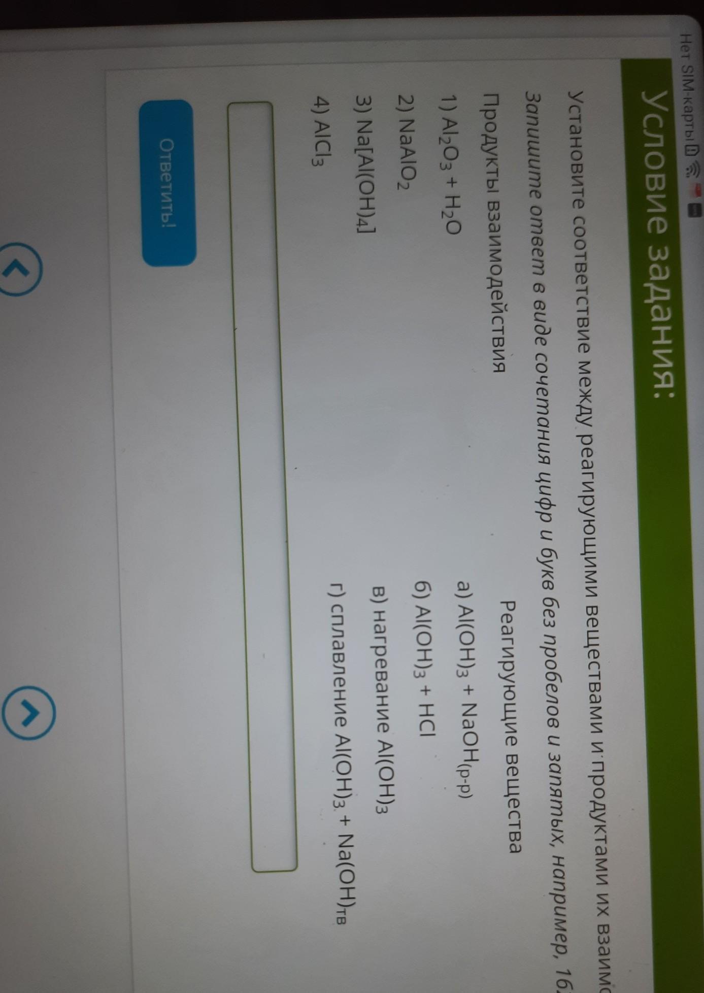 установите соответствие между реагирующими веществами и продуктами их