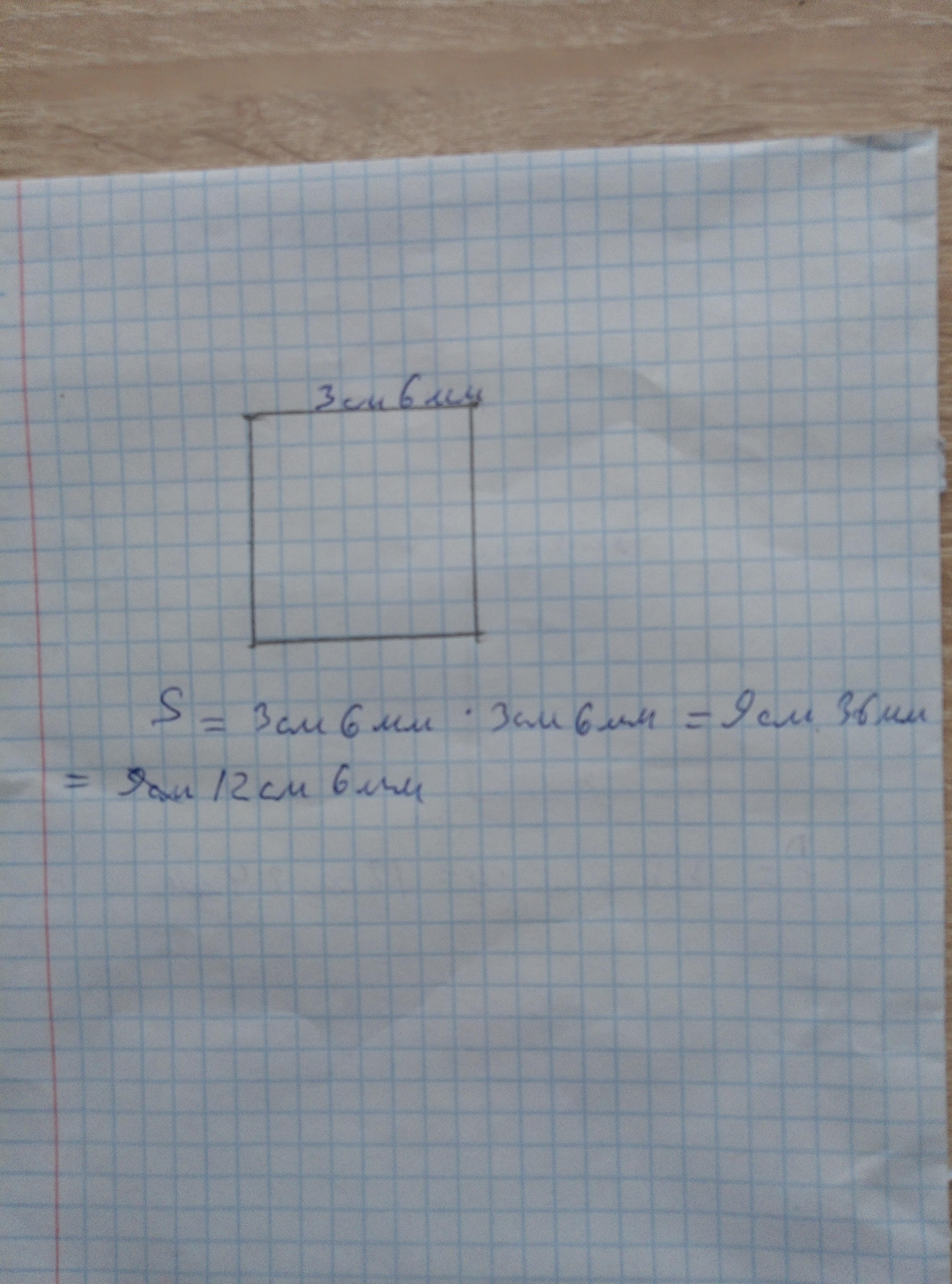 9 умножить на 9=81 мм площадь квадрата (0.81 см)