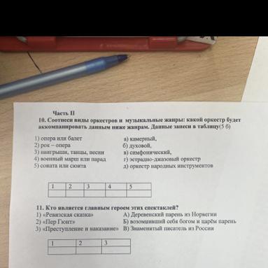 10. Соотнеси виды оркестров и музыкальные жанры: какой оркестр будет аккомпанировать данным ниже жанрам.