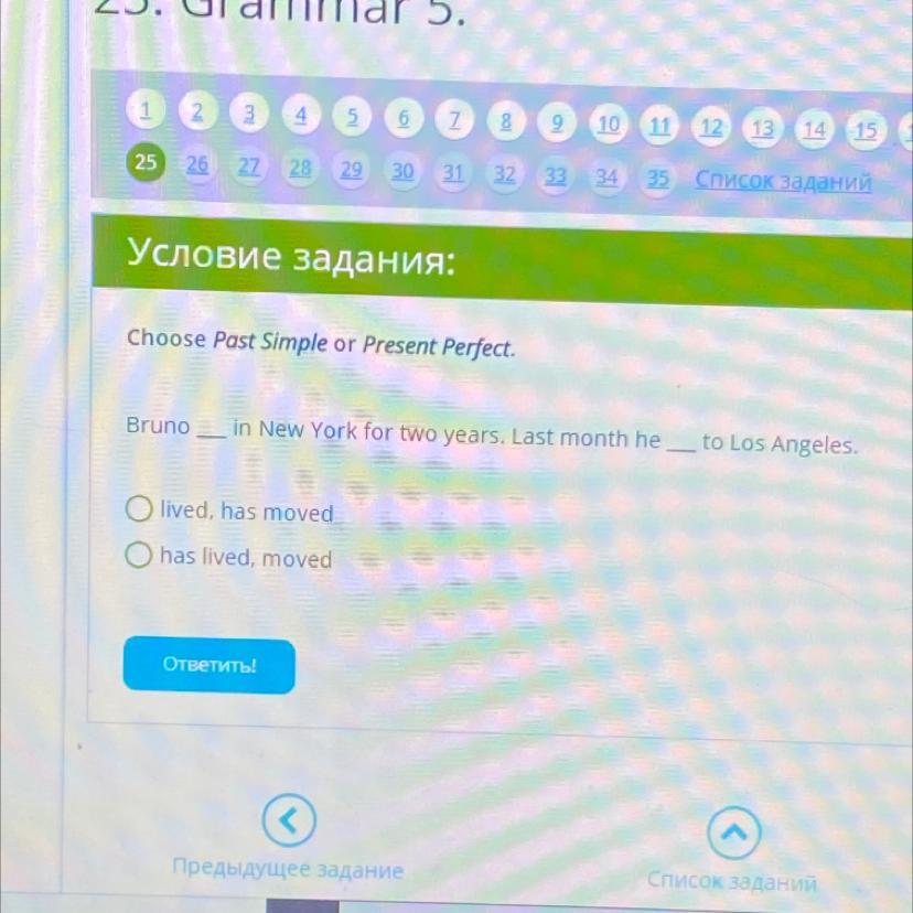 Bruno __ in New York for two years. Last month he __ to Los Angeles.