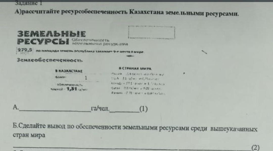 помогите пожалуйста умоляю с 1 заданием полностью сделайте вывод по обеспеченности земельными ресурсами среди вышеуказанных стран мира ДАЮ 15 БАЛЛОВ!!!!!!!