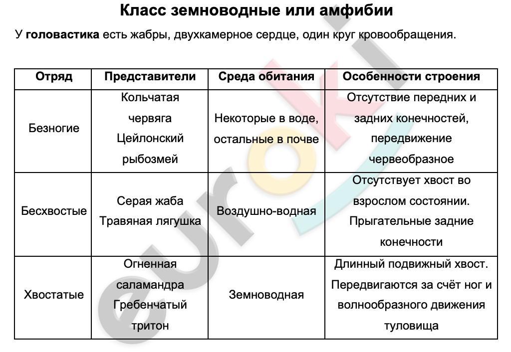 таблица по биологии амфибии ( общая характеристика, опорно двигательная система, пищеварительная система, нервная система, выделительная система, размножение и развитие)