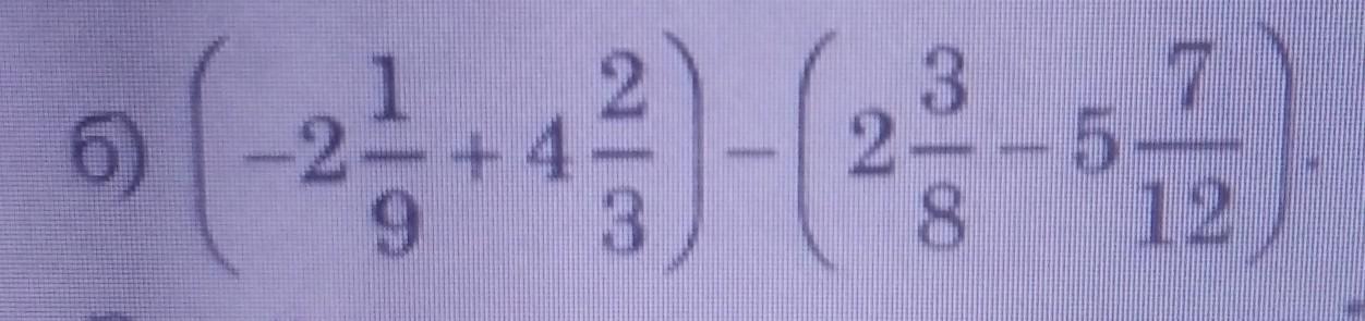 (-2 1/9+ 4 2/3)-(2 3/8-5 7/12)=(-19/9+14/3)-(19/8-67/12)=(-19/9+42/9)-(57/24-134/24)=23/9-(-72/24)=184/72-(-219/72)=-35/72