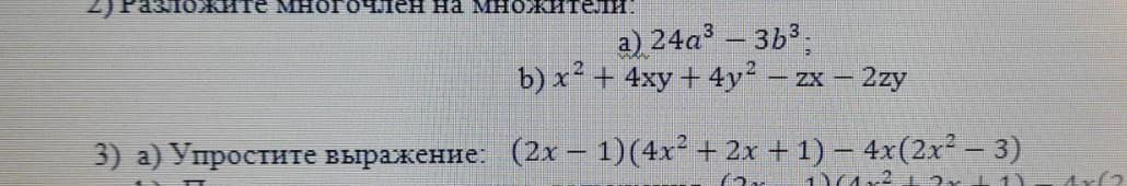 3. упростите выражение (2х — 1)(4x- + 2х + 1)- 4x (2x - 3) !!!!