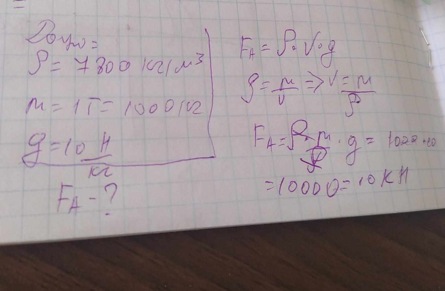 Какую силу нужно приложить, чтобы поднять со дна реки стальную деталь массой 1 тонна? (поднять, а не удержать!)