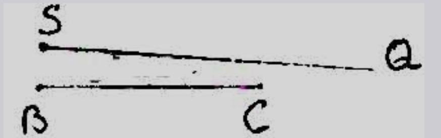 отметьте точки S, Q, B и C , так что бы прямые SQ, BC пересекались, а луч SQ не пересекал отрезок BC