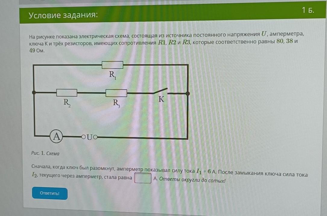 До замыкания U=I1*R1=6*72=432 B