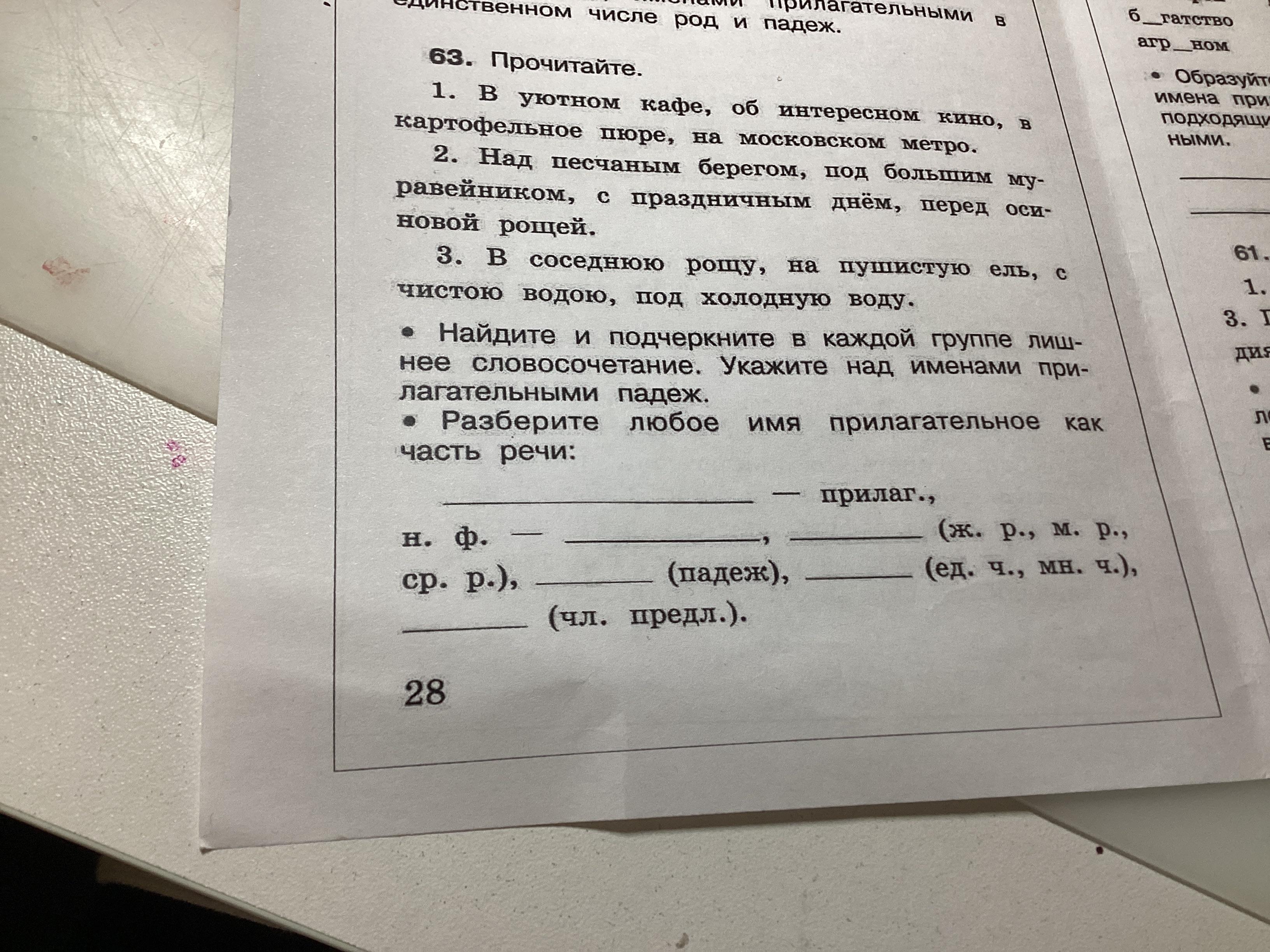 3. в соседнюю(в п) рощу на пушистую(в п) ель, с чистою водою( подчеркни чистою водою) (т п), под холодную(в п) воду