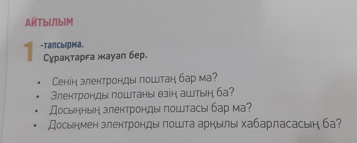 1. Если у тебя есть электронная. П. То пишешь "Ия менде электронды пошта бар" А если нет "Менде электронды пошта жоқ"
