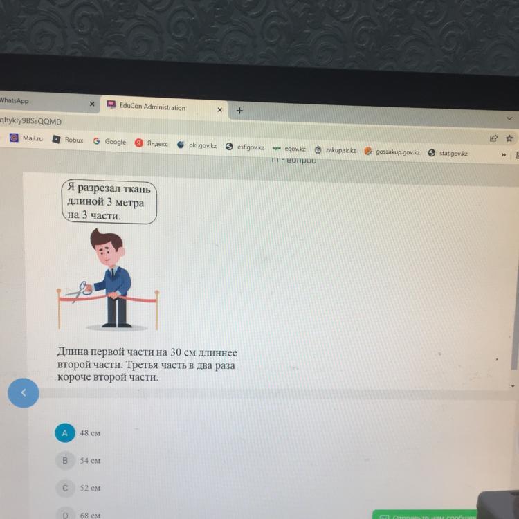 (2х + 30) = 108 + 30 = 138 (см) = 1 м 38 см - длина первой части