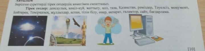 Бірінші суретте жасыл аспан. Екінші суретте бұл Қазақстан Тәуелсіздігінің Бәйтерек монументі. Үшіншісінде балаларға арналған жаттығу немесе спорттық қозғалыстар бар. Төртінші компьютерде олар ақпаратты табады, бағдарламалық қамтамасыз ету сайттары бар және Интернет қолданылады
