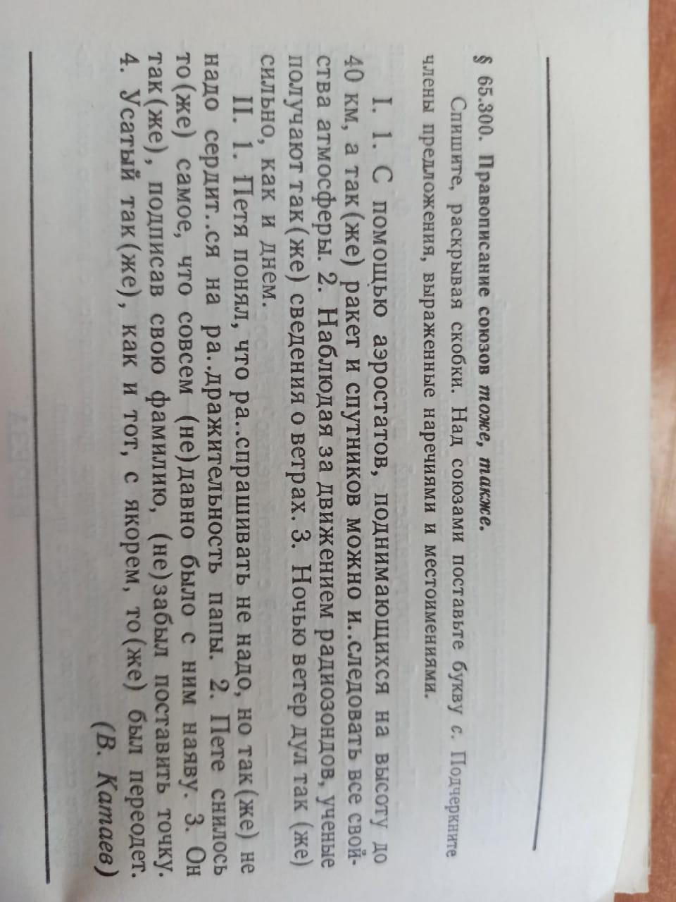 .с помощью ракет,а также спутников можно исследовать все свойства атмосферы.2.наблюдая за движением радиозондов,учёные получают также сведения о ветрах.3.ночью ветер дул также сильно,как и днем.2.1..Петя понял что расспрашивать не надо,но также не надо сердиться на раздражительность папы.2.Петр снилось тоже самое,что совсем недавно было с ним наяву.3.он также ,подписав свою фамилию, не забыл поставить точку.4.усатый,также как и тот,с якорем,тоже был переодет.