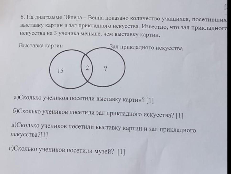 в) 2 ученика посетили выставку картин и зал прикладного искусства.