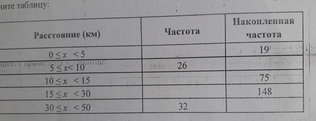 Расстояние (км) Частота Накопленная частота