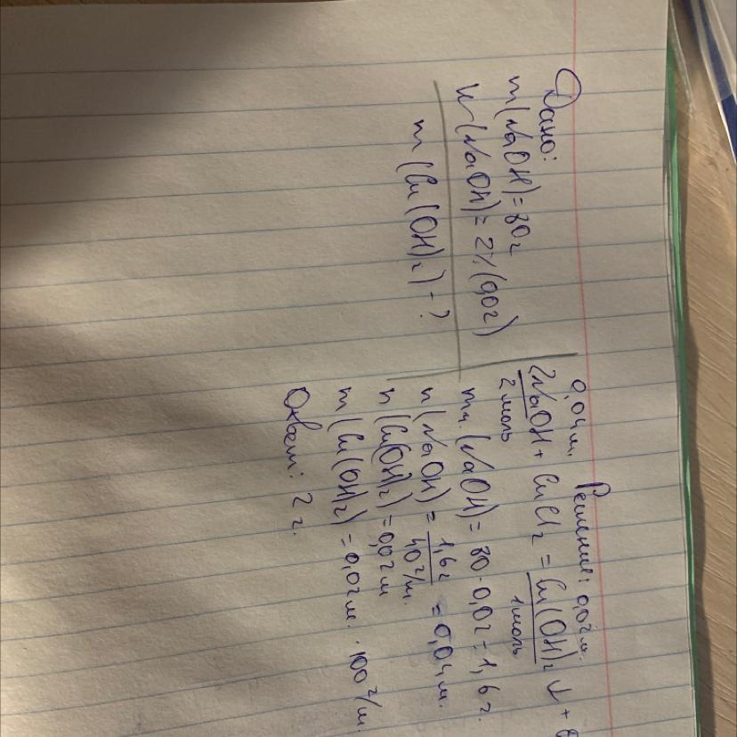 Решите задачу: Вычислите массу гидроксида меди (I), который образовался при взаимодействии 80 г. 2% -го раствора гидроксида натрия с раствором хлорида меди