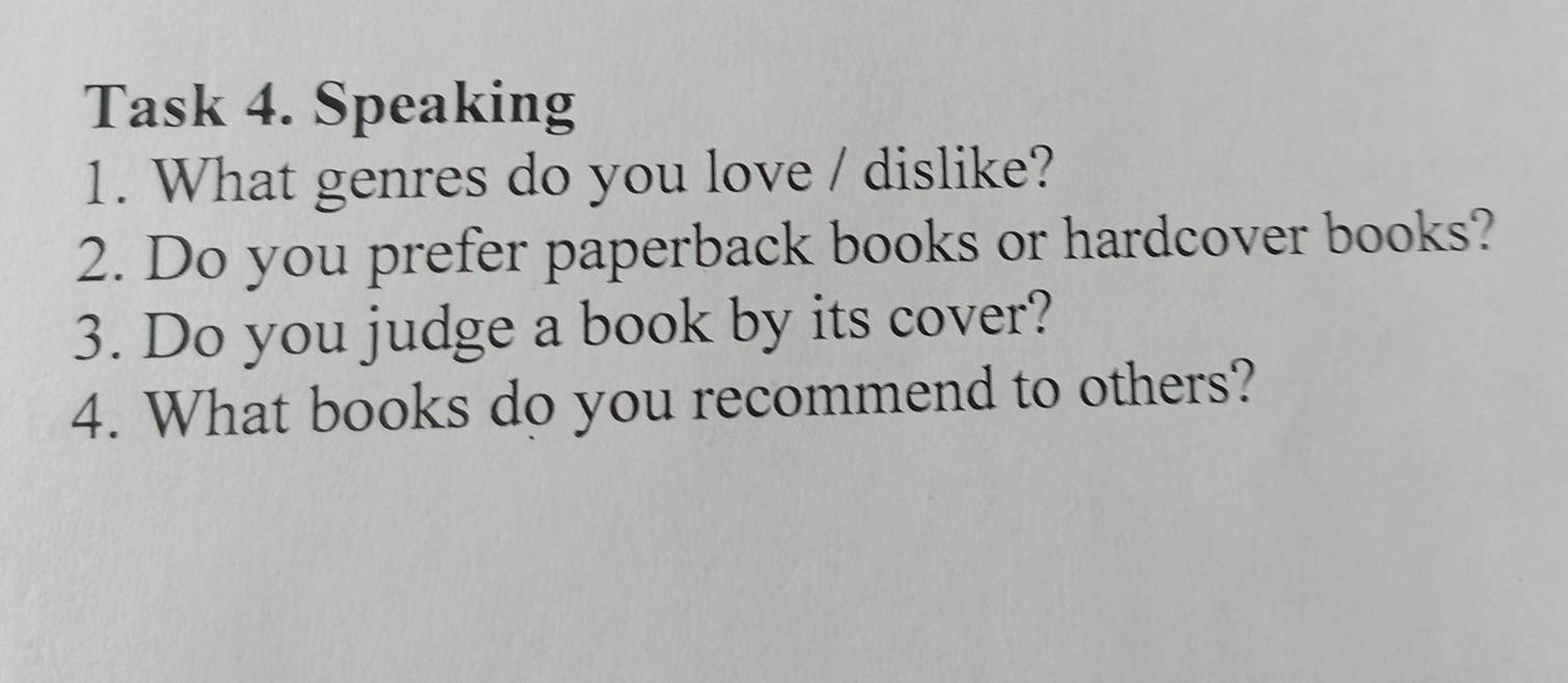 1. I like reading crime stories. I love investigating crimes together with a detective. To be honest, I don't really like fairy tales. They seem to be too childish for me.