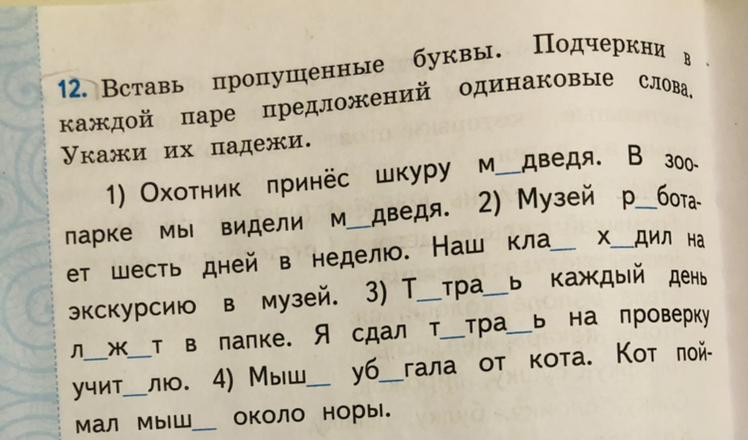 повторы: медведь, музей, тетрадь, мышь