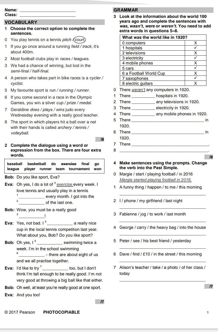 1were, 2 weren't, 3 was, 4 weren't, 5 were cars, 6 wasn't a Football World Cup, 7 were saxophones in 1920, 8 There weren't any electric guitars in 1920.