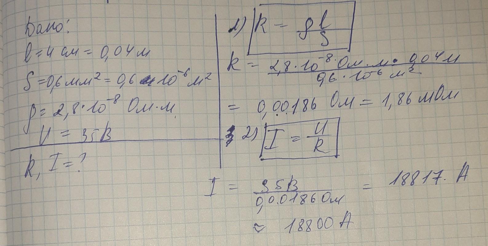 6. Проводник сделан из алюминия, имеет длину 4 см и площадь поперечного сечения 0,6 мм*.