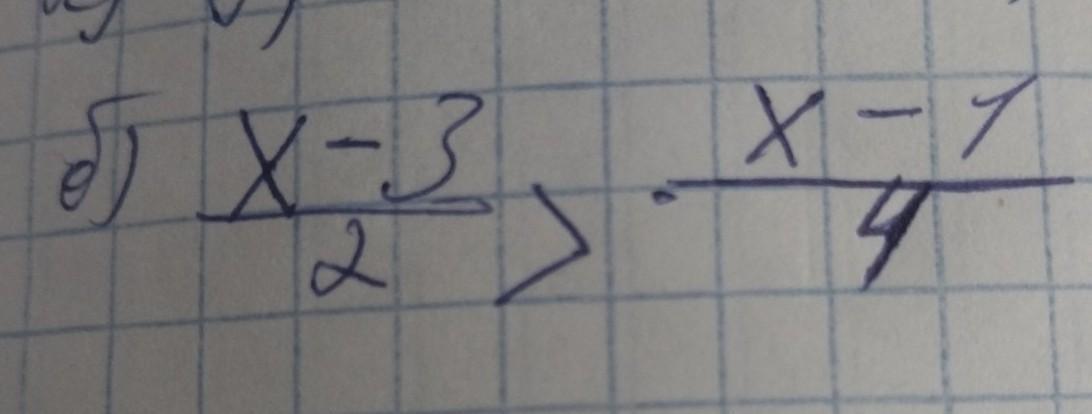 умножаем обе части неравенства на 4, чтоб избавиться от знаменателя. получим 2(х-3) больше х-1