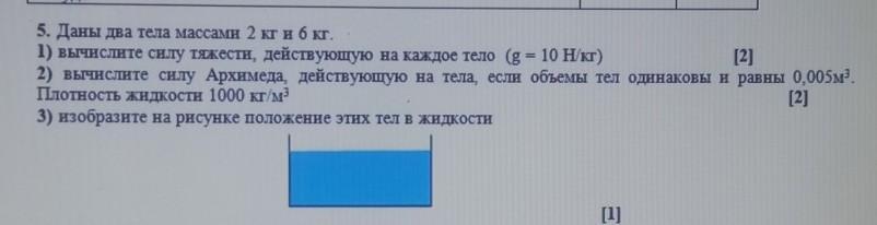 2) вычислите силу Архимеда действующую на тела, если объемы тел одинаковы и равны 0,005м³.