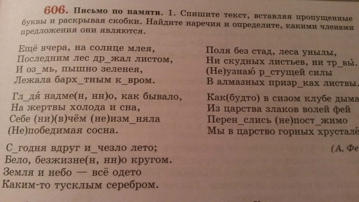 вставте пропущенные буквы и раскройти скобки, определите какими членами предложения являются наречия