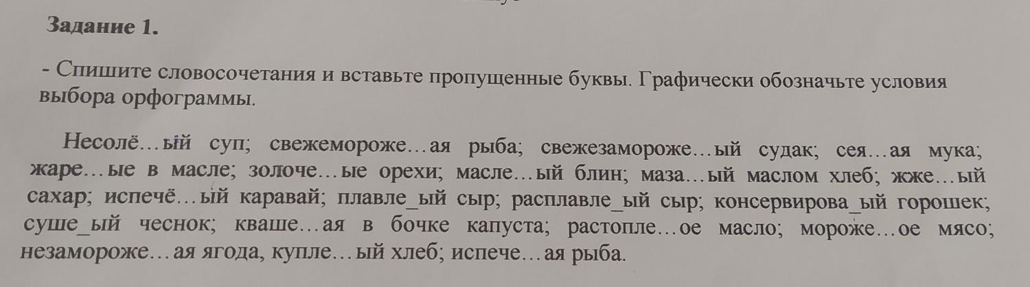 Задание 1. Спишите словосочетания и вставьте пропущенные буквы. Графически обозначьте условия выбора орфограммы.