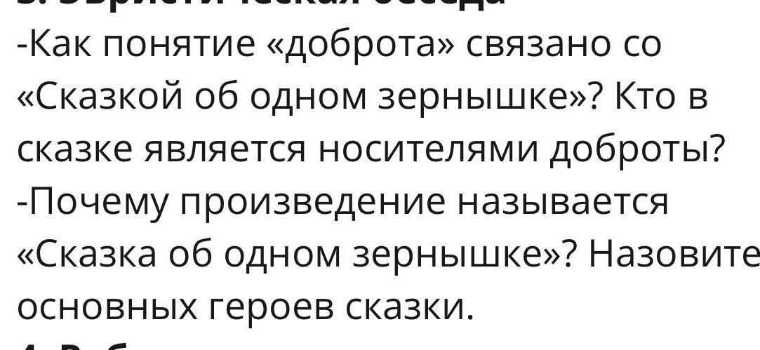 1) доброта связана с сказкой потому что если бы младший брат не был добрым он бы не смог бы понять зёрнышко